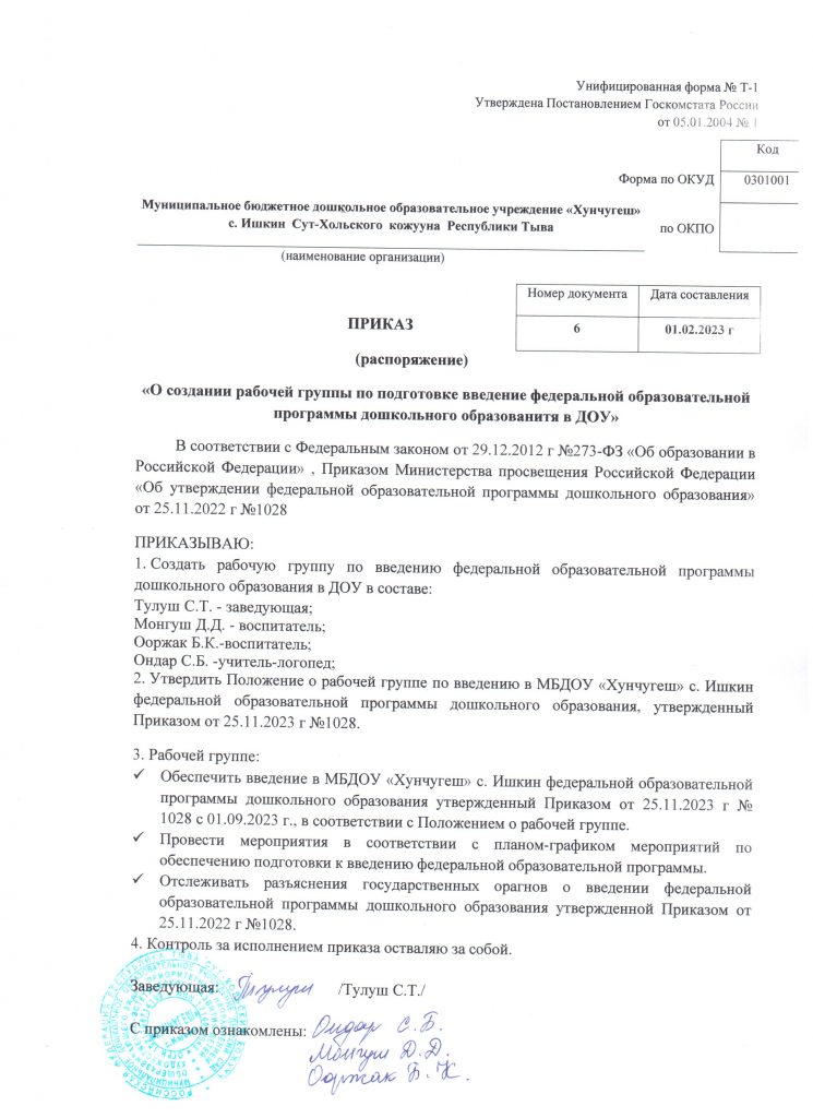 Для обеспечения методической поддержки педколлектива в детском саду создана рабочая группа по разработке Дорожной карты ФОП ДО, Программы развития. В связи с этим МБДОУ «Хунчугеш» с. Ишкин с 01.09.2023 года переходит на непосредственное применение вышеуказанной Программы.